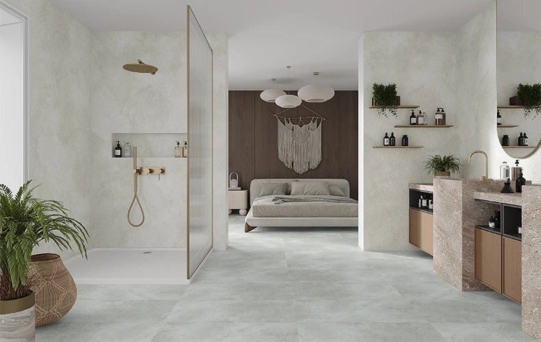 Modee wall panels are the perfect solution for bathrooms — both for new interiors and fast renovations. Thanks to their waterproof structure made from natural minerals, they perform exceptionally well in wet zones such as around bathtubs, showers, sinks, and toilets. Their high resistance to moisture, temperature changes, and stains means they protect surfaces and are easy to maintain daily. Modee allows for a complete bathroom transformation in just two days — without demolition, dust, or the hassle of traditional tiling work. The innovative installation system enables panels to be mounted directly on existing tiles, saving time and avoiding major overhauls. With textures inspired by stone, concrete, or wood, Modee panels add modern character and visual warmth while ensuring long-lasting durability and comfort. It’s a stylish and practical upgrade that raises the standard of any bathroom.